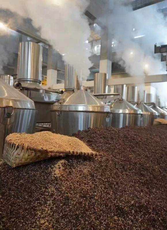 每个环节都有一次蒸煮,整个过程共有九次蒸煮。